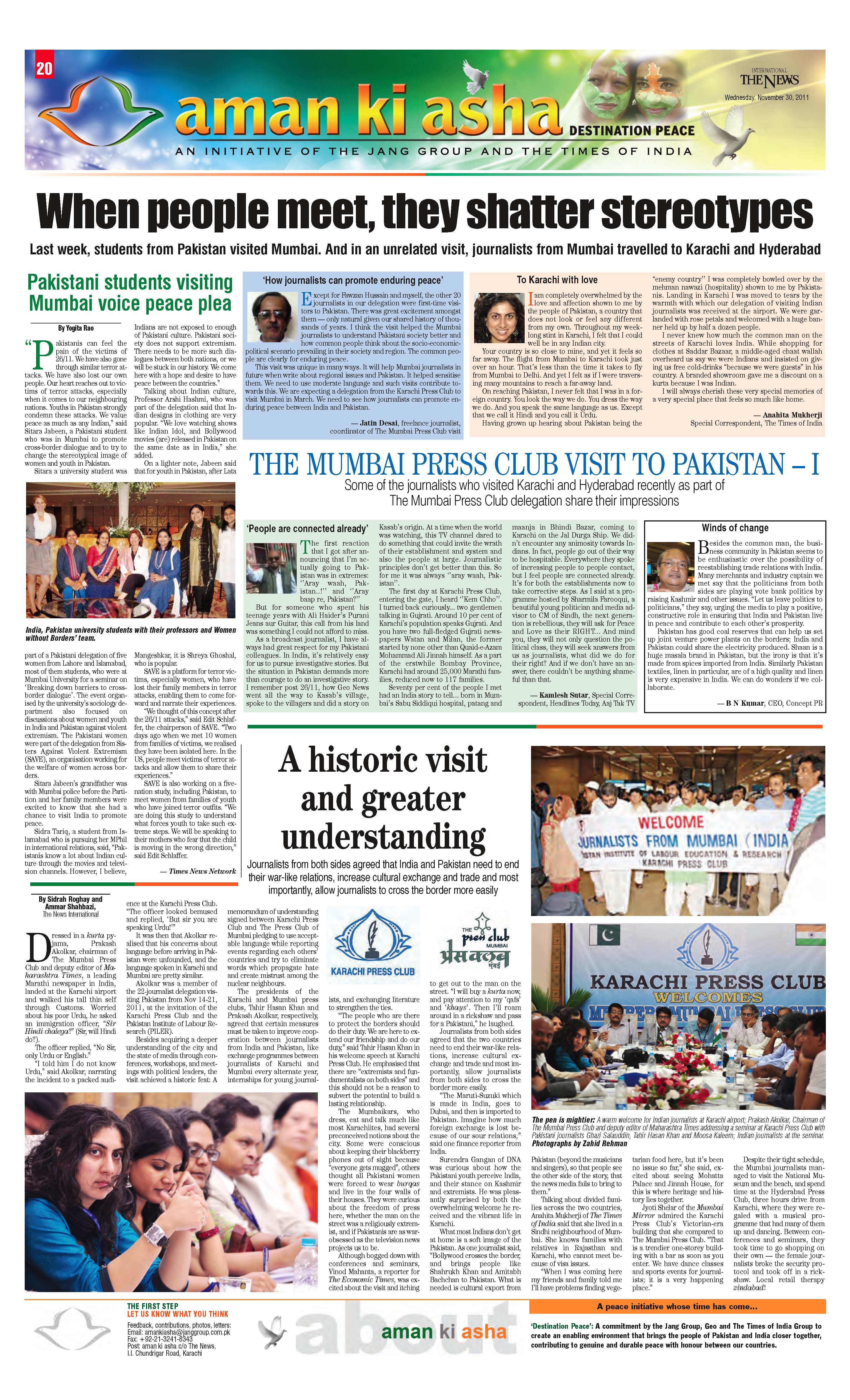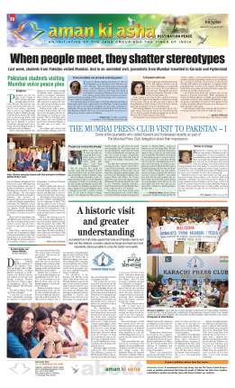 Here are PDFs of two recent Aman ki Asha pages that I tried to email to the Mumbai journalists who visited Pakistan recently, as the pages feature their responses. Since the second PDF file was for some reason too large to email, I’m posting both of them here. Click these links for the PDFs: