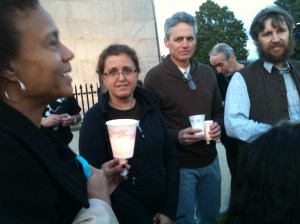 Vigil organiser Joanne Samuelson handed out candles to participants, mostly local residents, joined by some members of the Pakistani community coming in from nearby Cambridge as well as further afield, like Dr Jamila Khalil, an ethnic Pushtun, who is with the Association of Pakistan Physicians of New England (APPNE), a former Charlestown resident. She drove about an hour from the suburb where she now lives, bringing her two teenage children to the event.