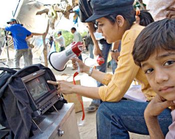 Ramchand Pakistani director Mehreen Jabbar with Syed Fazal Hussain who plays the child Ramchand