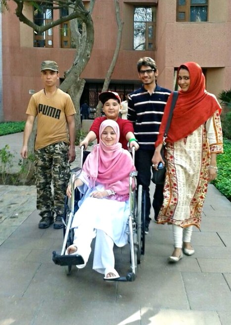 Masting blast survivors Meraj, Ibtihaj and Mehrin with volunteers. Photo: Anas Mallick