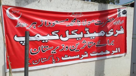 A close up of the banner advertising Jaish-e-Mohammad – Photo by Taha Siddiqui