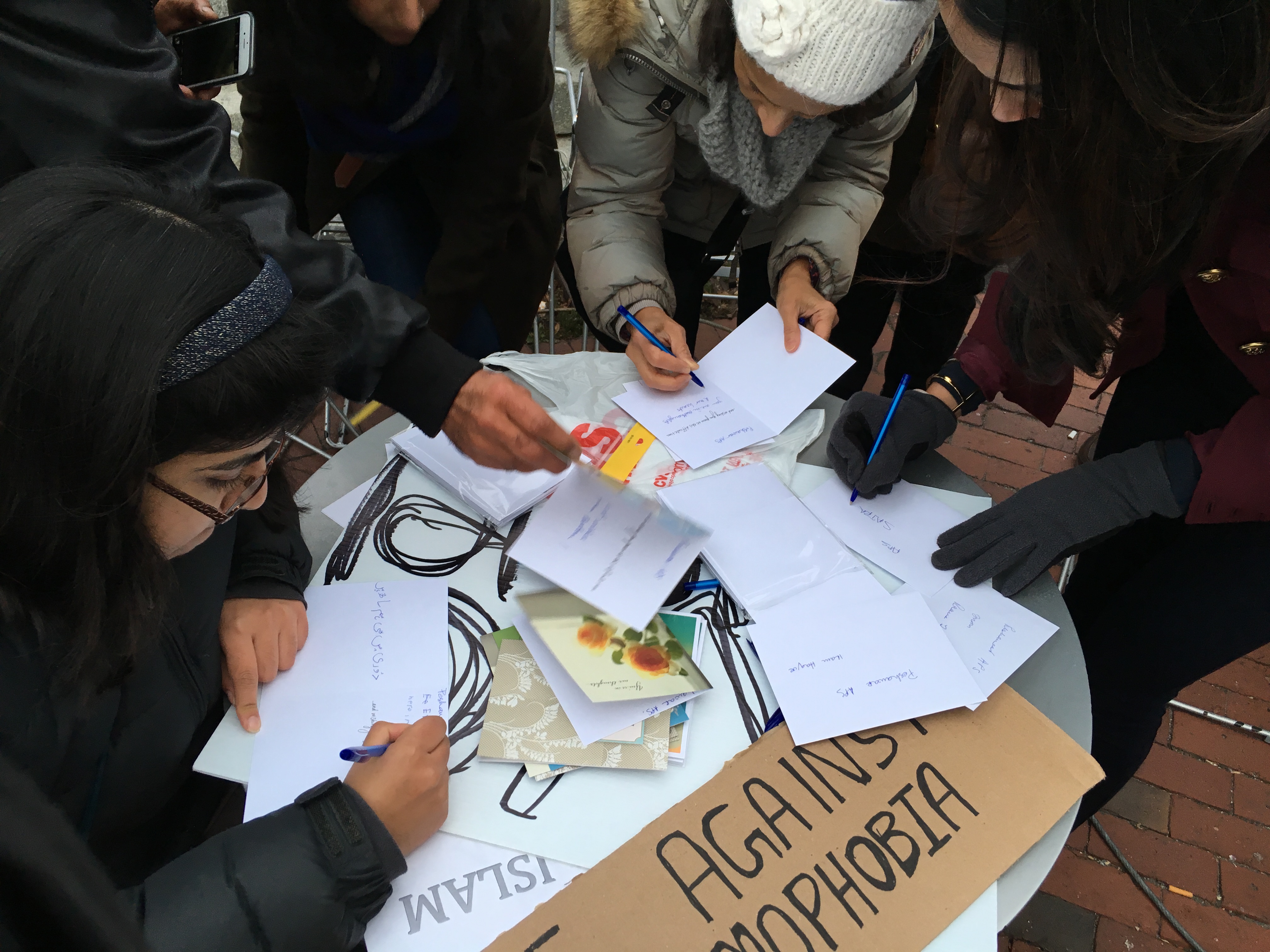 » Signing cards for APS at Boston rally