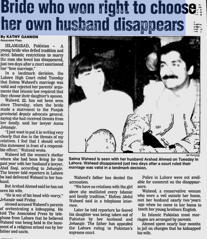 News report, March 15, 1997 – Saima fled Pakistan with Arshad shortly after the court ruled their marriage valid