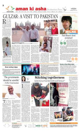 For the first few years, Aman Ki Asha music and literary festivals, economic symposiums and seminars discussing strategic issues, were organised in cities around India and Pakistan. The Jang Group and TOI reported on these events in their newspapers, sometimes as full-page supplements; the Jang Group’s Geo TV also broadcast reports about these events. Often other media, however, chose not to cover such events as most publications then would not name or promote any activity by their professional rivals.