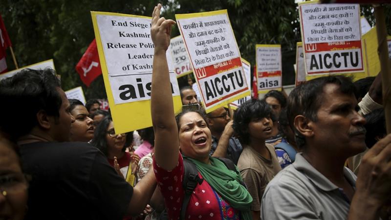 Delhi, 7 August: Protest in support of Kashmiris rights. Photo: Altaf Qadri, AP