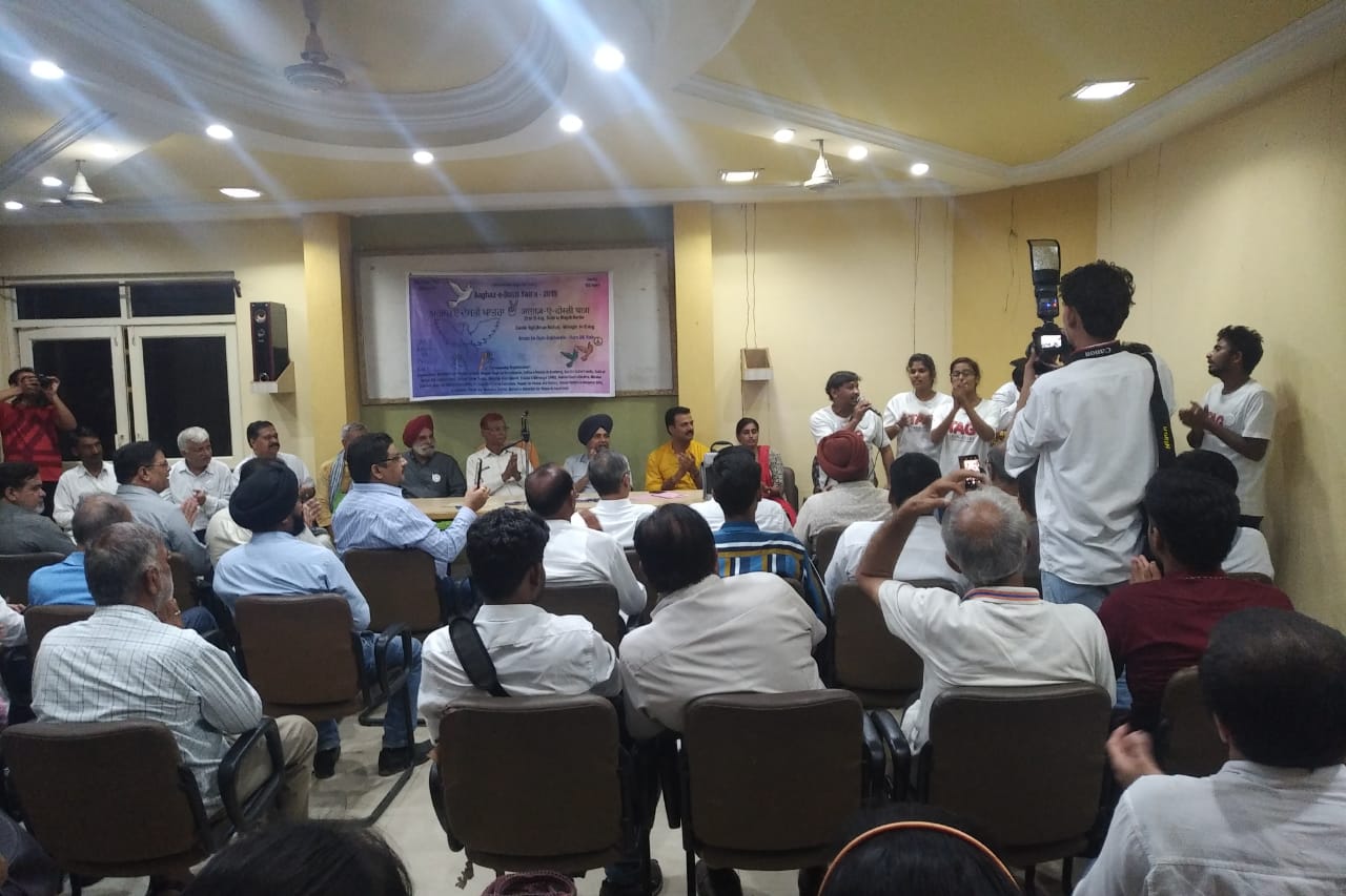 Speaking at the event, Indian Army Col. (Rtd) Ahluwalia welcomed the marchers, supported their call for peace and shared his friendly experiences with Pakistani counterparts in 1982 at Suchetgarh border region. The local hosts included renowned writer activist Dr Pavan Arya, along with Harpal Singh Kamboj and several other leading faces from Ambala.