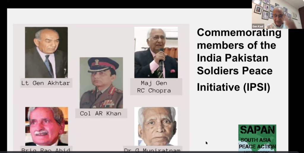 Participants also paid homage to veterans of the India Pakistan Soldiers’ Peace Initiative (IPSI) who have passed on over recent months. The IPSI was founded by the late Nirmala ‘Didi’ Deshpande, one of the leaders whose vision guides SAPAN. “This was a landmark initiative by Didi who tried to bring the world together with the slogan ‘jai jagat’ — long live the world,” reminisced Gen. (rtd.) Tej Kaul, chair of IPSI-India.