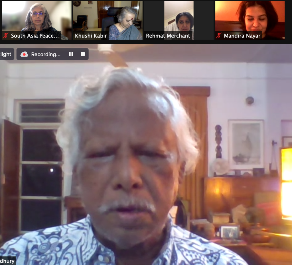 Wishing him a speedy recovery, Khushi commented, “Each time we meet, there are more losses people who have been part of our journey”. As at the previous SAPAN meeting there was a commemoration of mentors and leaders whose vision SAPAN is taking forward, like Asma Jahangir and Dr Mubashir Hasan, and Nirmala Despande and others.