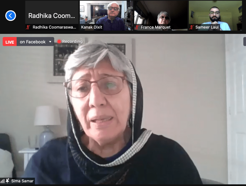 Former Minister of Women’s Affairs of Afghanistan Sima Samar also paid tribute to victims of the “9/11” attacks and subsequent war in her country which has received the brunt of the pressure — “we don’t know how many bombs were put in Afghanistan.”