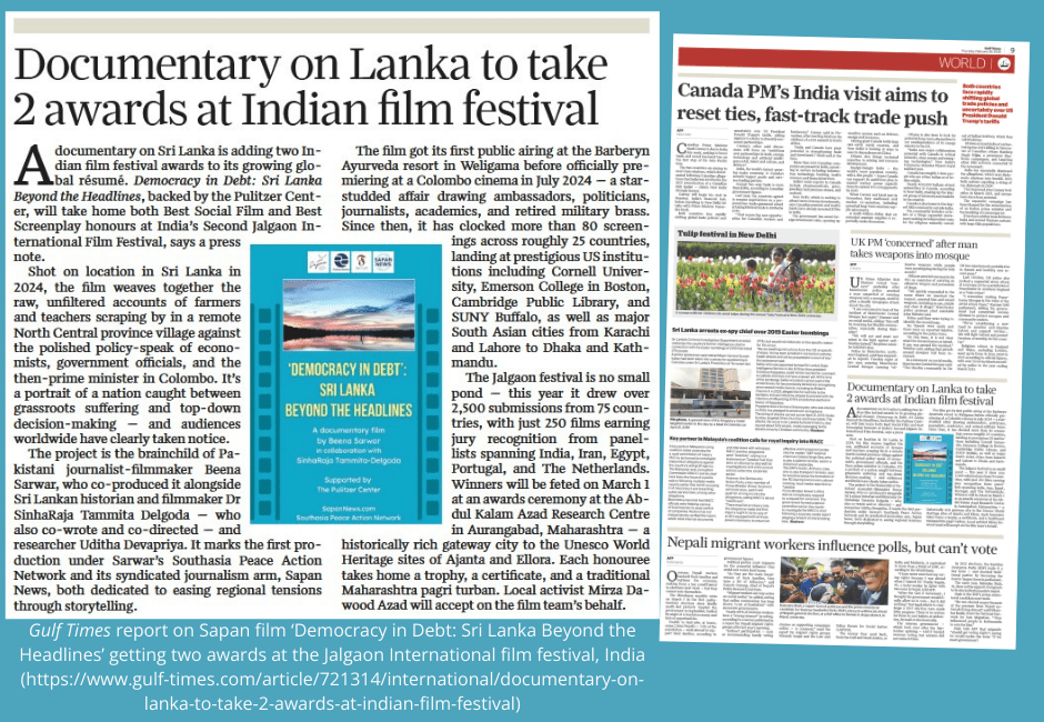 Filed under: Culture, journalism, Southasia | Tagged: covid-19, democracy in debt, farmers, history, jalgaon film fest, News, Politics, pulitzer center, Sapan, sapan news, Southasia Peace, southasia peace action network, Sri Lanka, teachers, writing |