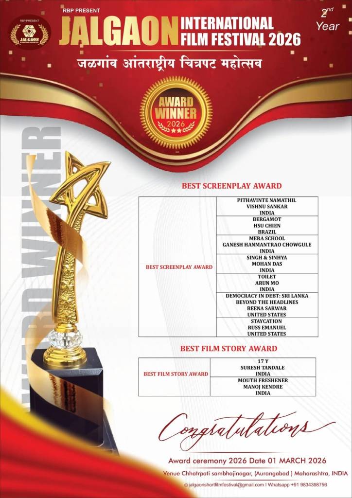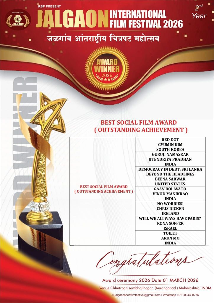 The world is in turmoil. And we can still celebrate that our Pulitzer Center-supported documentary ‘Democracy in Debt: Sri Lanka Beyond the Headlines’ received two awards at the Second Jalgaon International Film Festival, in Aurangabad (now Chhatrpati Sambhajinagar), India. at a ceremony on Sunday, 1 March 2026, for Best Social Film (Outstanding Achievement), and Best Screenplay.
