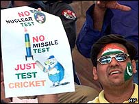 My favourite placard from the 2004 series: "NO nuclear test, NO missile test, just TEST CRICKET"